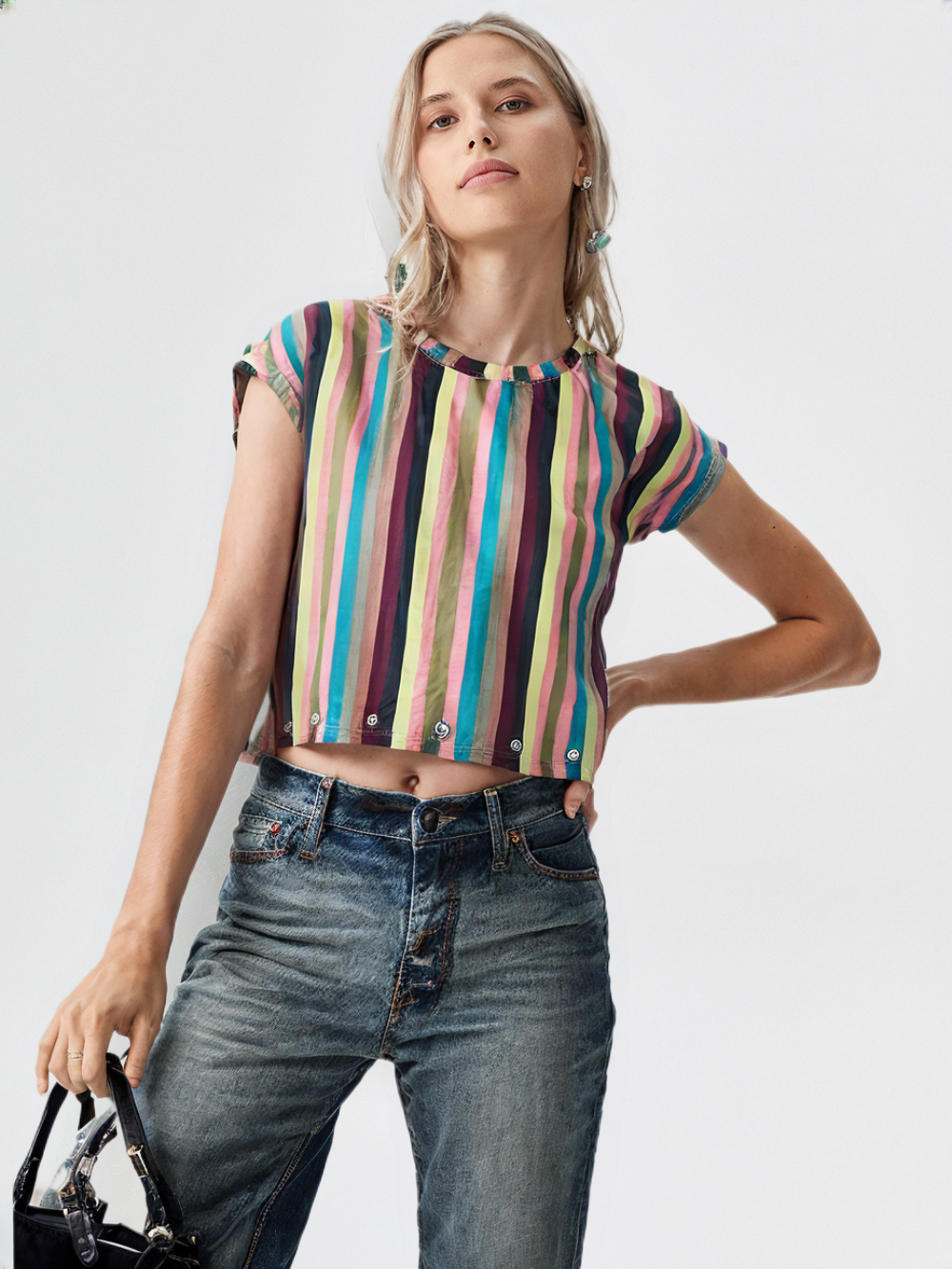 (Ld blouse dgtl stripe w/ring #469) (Color 1)